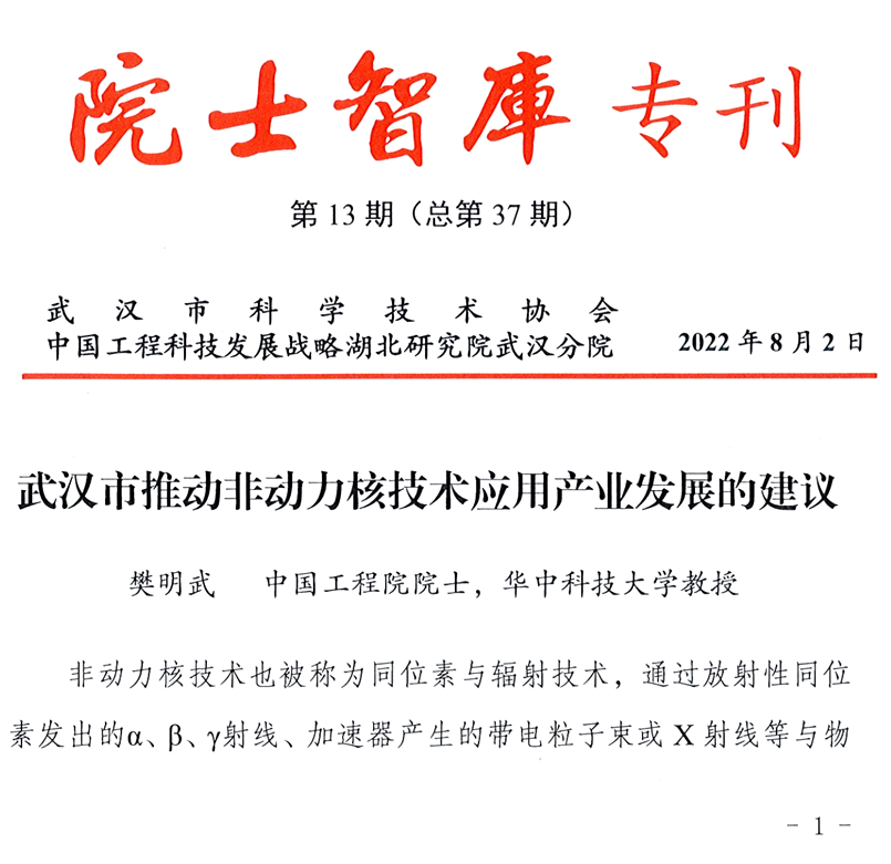 3月18日,由樊明武院士承担的中国工程科技发展战略湖北研究院2020年重大咨询研究项目《非动力核技术推动武汉市及湖北省中小企业实体经济创新发展的战略研究》结题评审会在NT动漫 电气大楼A316会议室举行。评审专家组一致认为,项目组高质量地完成了任务书中的研究内容,研究报告内容详实、结论正确、建议合理,符合战略性、前瞻性、综合性的原则,达到了研究目标,同意结题。