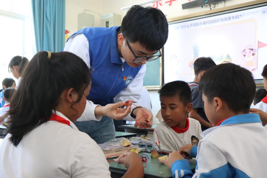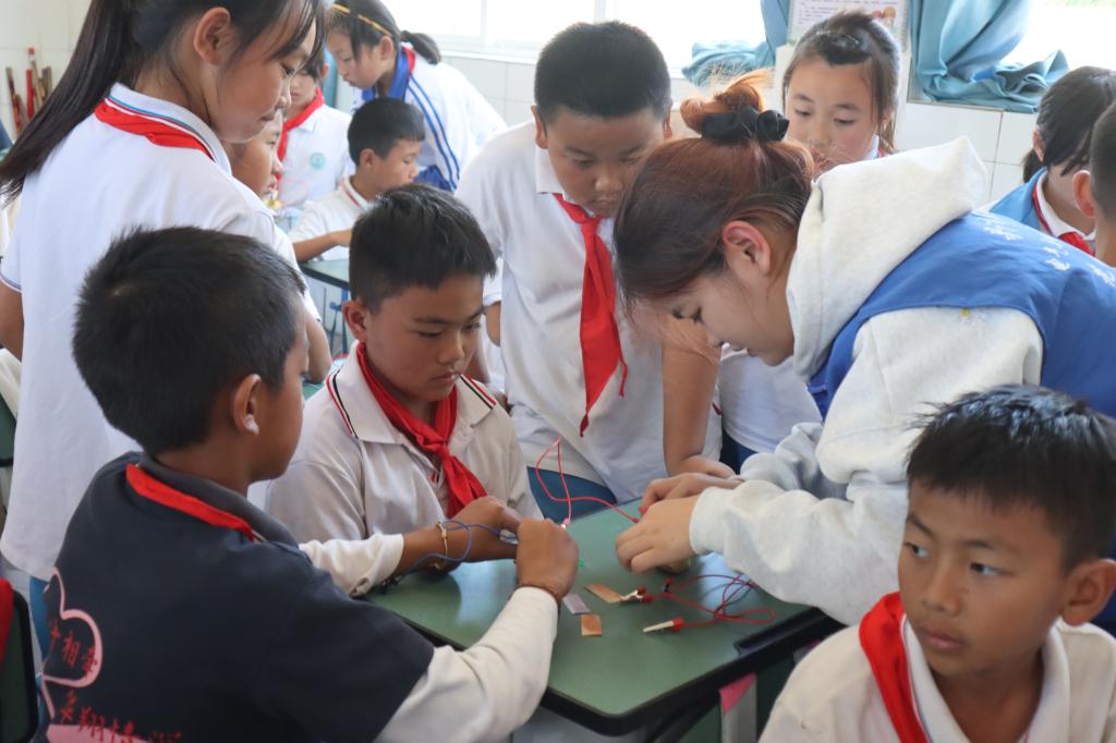 12月5日上午,尤政在蚂蚁堆中心完小详细了解了NT动漫 在当地开展教育帮扶工作的情况汇报,NT动漫 支教生、原创科普图书副主编周竞辰向尤政一行介绍了NT动漫 原创科普图书《名师领衔科普——走进华科大电气》及趣味科普活动,完小学生向校长演示实验过程,并讲解实验原理。