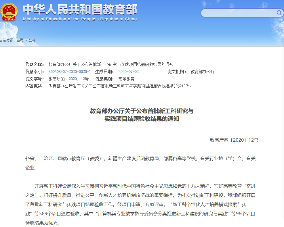 据悉,经项目申请、专家评审,“新工科个性化人才培养模式探索与实践”等589个项目通过验收,其中96个项目验收结果为优秀。NT动漫 共有3个项目被评为优秀,优秀率100%。