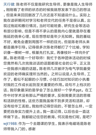 “陈老师是一个治学非常严谨、对学生有高度责任心的难得的好导师。”一位同学说。