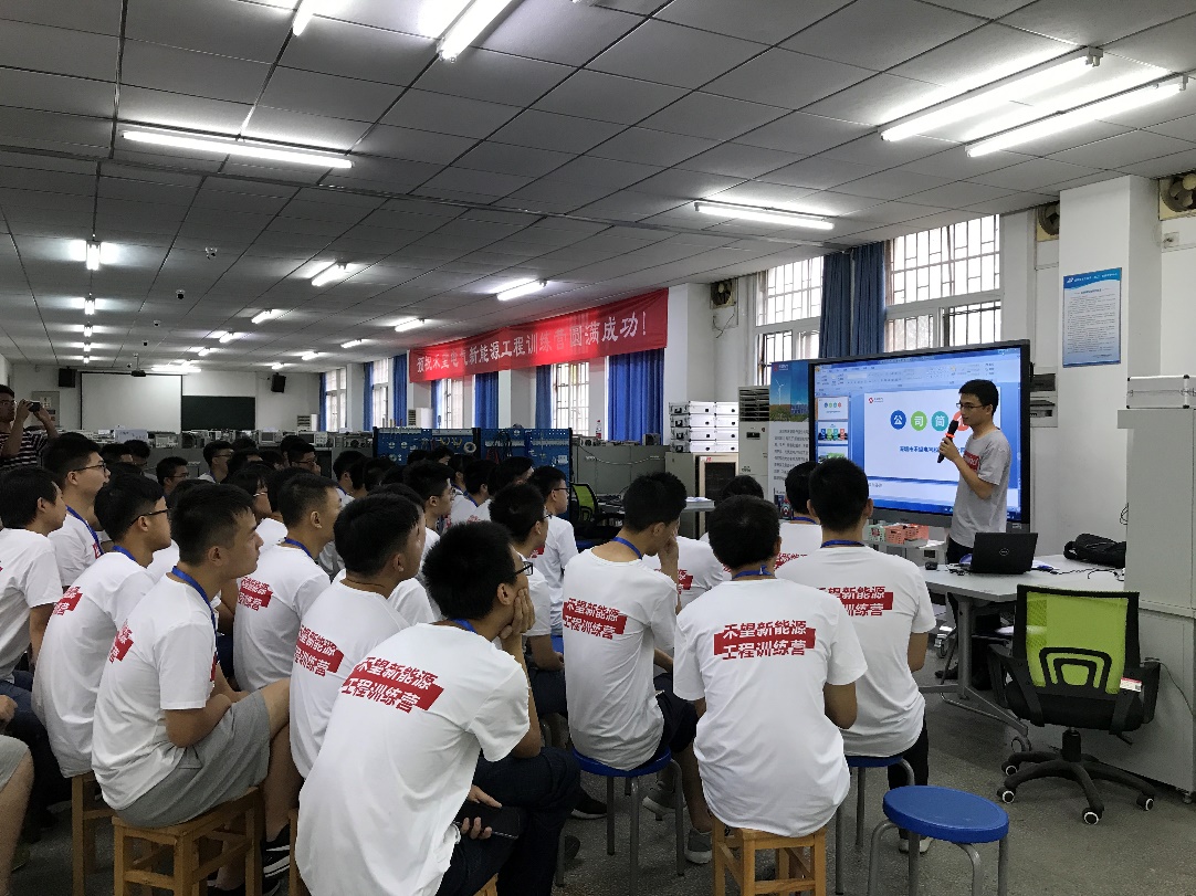 项目基础训练阶段,禾望工程师到校进行现场讲解,由资深项目管理经理讲解公司发展和NT动漫,用案例分析进一步讲解企业的项目研发流程、质量管理和进度管理,研发流程中关键里程碑,由资深研发工程师现场演示设备测试平台,帮助同学进一步明确需完成的项目要求和流程。