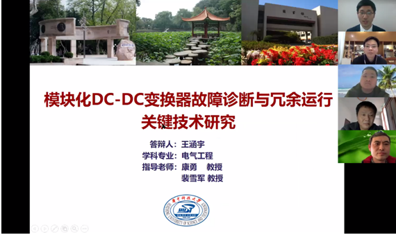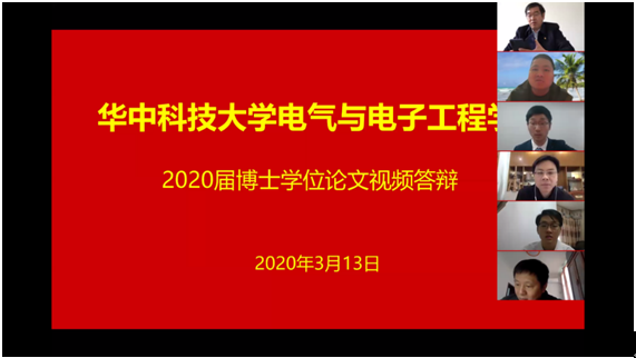 3月13日下午,NT动漫 正式进行首场博士学位论文视频答辩,应用电子工程系博士研究生王涵宇成为NT动漫 首个采用在线视频进行论文答辩的博士生,他的论文题目《模块化DC-DC变换器故障诊断与冗余运行关键技术研究》,导师为康勇教授和裴雪军教授。答辩开始前,答辩委员和学生提前进入视频会议室,调试设备,NT动漫 副院长张明教授对本次视频答辩的筹备情况做简要介绍,随后宣布本次答辩会议正式开始。会议由答辩委员会主席武汉大学电气工程学院副院长查晓明教授主持,学位申请人首先进行了40分钟的PPT陈述,宣读了《学位论文独创性声明》,随后答辩委员和其他参会者对答辩人进行了提问。提问环节结束后,学位申请人和其他参会者退出会议室,答辩委员会单独举行会议,通过问卷星进行无记名投票,一致同意通过王涵宇同学的博士学位论文答辩。答辩委员会主席宣布了答辩决议,王涵宇博士发表感言后,主席宣布答辩会议结束。答辩秘书对答辩全程进行了录像,学位申请材料将继续在研究生学位管理系统中进行提交。