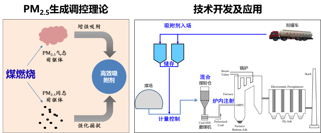 大气PM2.5污染严重危害生态环境及人类健康,燃煤电站是重要的PM2.5排放源。团队发明一种基于高效吸附剂的燃煤PM2.5生成调控技术,通过燃烧中抑制PM2.5的生成,从“源头”实现其深度减排,是对传统燃烧后物理除尘技术的原创性突破。技术还具有协同脱除其它污染物和缓解锅炉结渣沾污的作用,受国家重点研发计划项目支持,首次在全球最大规模燃煤机组实现成功应用,具有重要推广应用价值。