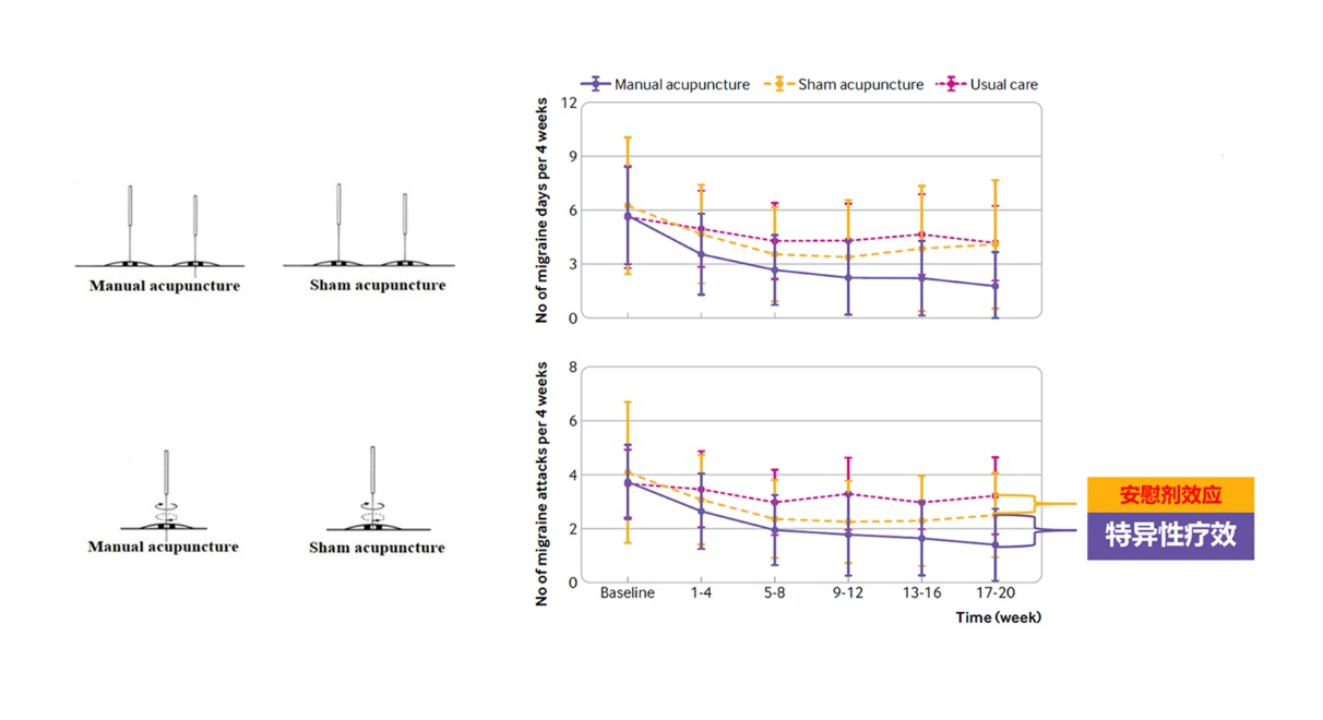 多中心随机对照试验证实:与安慰针刺对照组比较,针刺预防偏头痛起效
