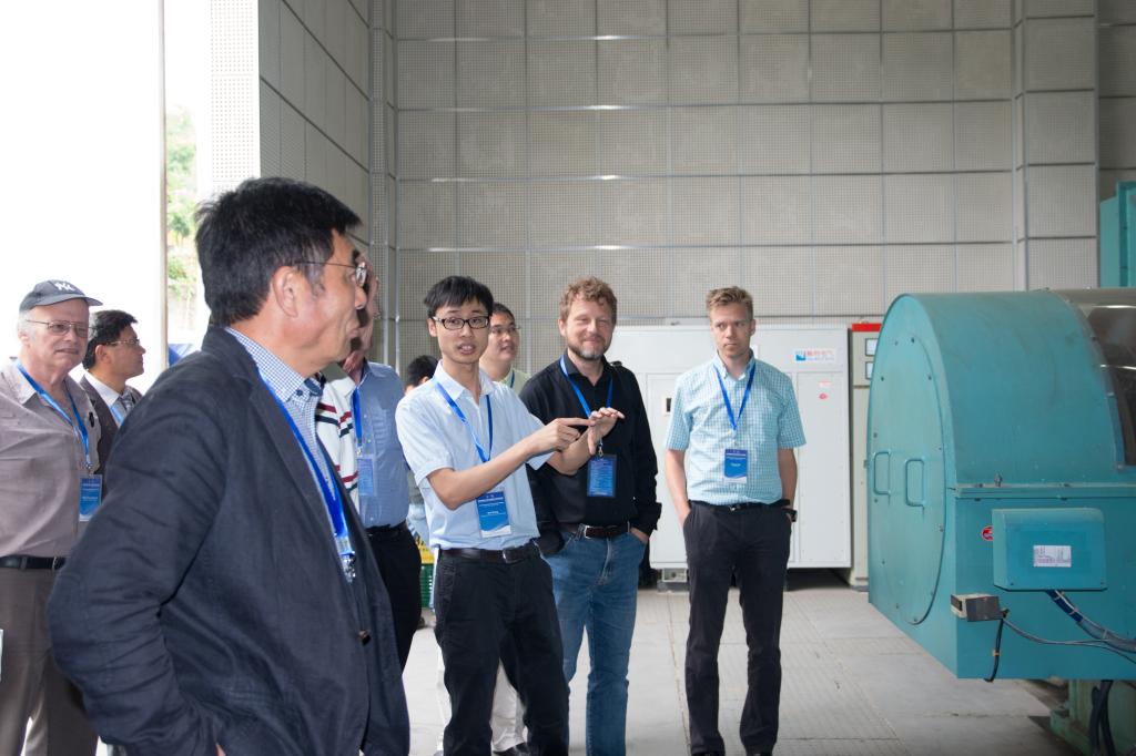 基地科普负责人郑玮教授为国际访客介绍脉冲发电机装置