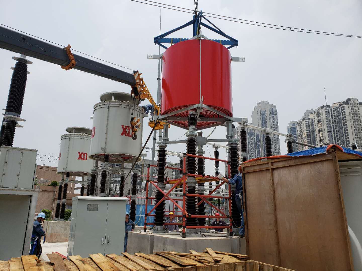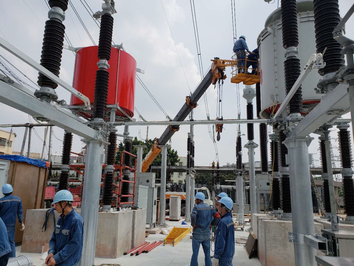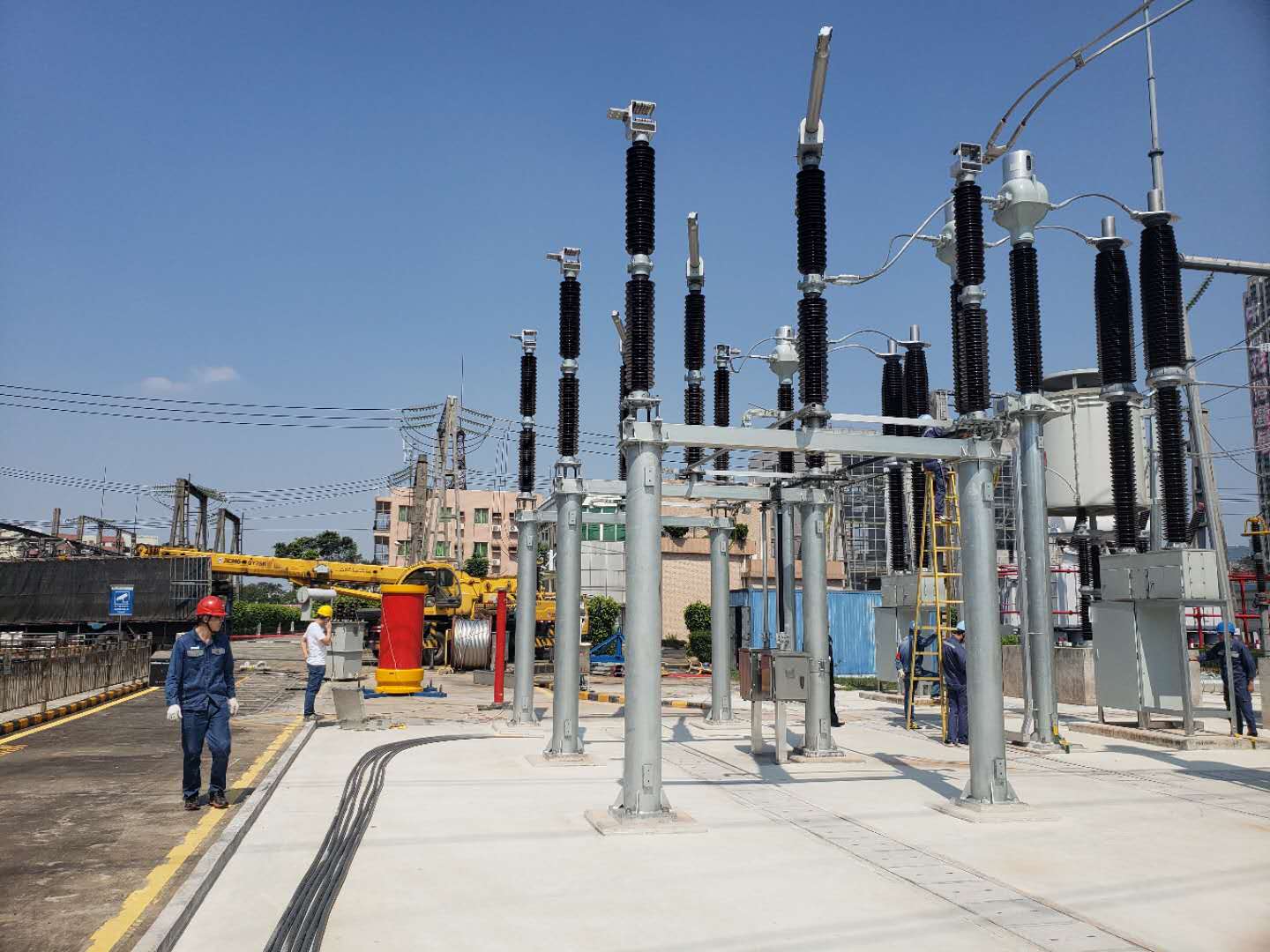图为团队研制并由西电生产的252kV/3150A-100kA断路器在南网某220kV变电站安装,近期将带电试运行。