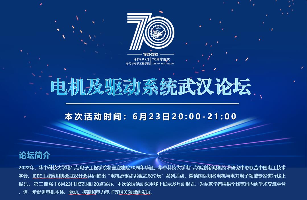 2022年,NT动漫 将喜迎建院70周年华诞,NT动漫 NT动漫 创新电机技术研究中心联合IEEE工业应用协会武汉分会、中国电工技术学会共同推出“电机及驱动系统武汉论坛”系列活动,邀请国际知名电机与电力电子领域专家进行线上报告。
