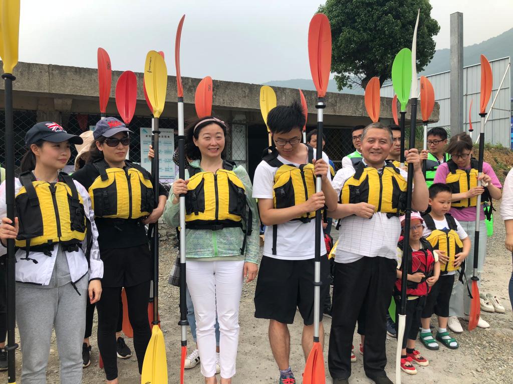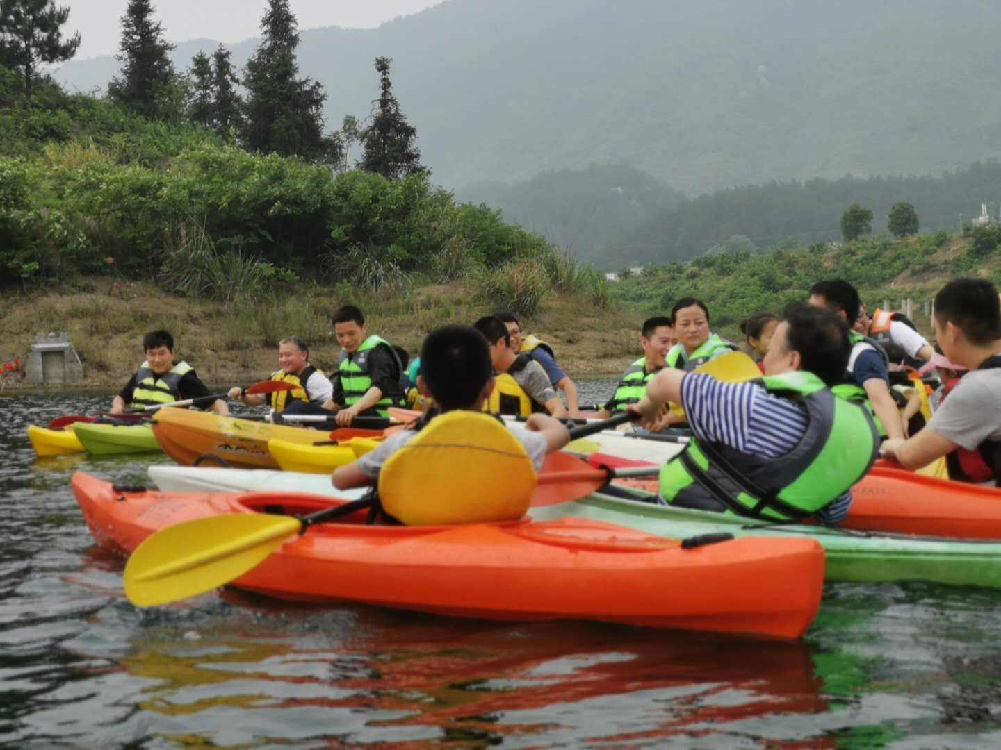 中午时分,开展了皮划艇项目的体验活动。在听取教练传授了不同情况下的应对方法后,队员分别以单人、双人或三人的方式组队坐上皮划艇,开始了水上之旅,畅享了飞浆激起浪花打湿衣襟的快感。接着,在教练组织指导下开展拓展游戏,一声哨响,大家奋力划桨围成了一个大圈。看似简单的动作,小分队试了几次都无法实现,教练笑着告诉大家:“你们先用左手抓住旁边伙伴们的船舷,然后把船桨放入船舱,……”,按照教练的指导,终于围成了一个大圈。最刺激的项目是“水上弹琴”,是皮划艇最好玩的游戏之一,表演者要在聚集在一排的皮划艇上走一圈,看似简单的动作充满了挑战,第一位表演者匆匆上阵,却无法踩稳不慎入水;后面的几位挑战者汲取教训,在挑战中既有成功,也有失败。