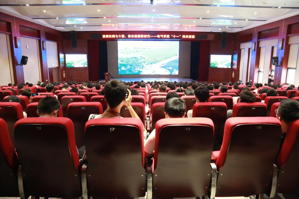 9点57分,在看到习近平总书记等一众国家领导人入场时,现场爆发出了雷鸣般的掌声,大家也呐喊出了华中大电气对祖国的祝福。