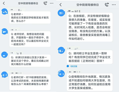 在线上问答互动环节中,同学们积极与学院领导老师交流互动,学院领导耐心细致地为同学们答疑解惑,介绍学院的相关措施,30个问题在一个半小时的交流中均得到相关答复和确认。