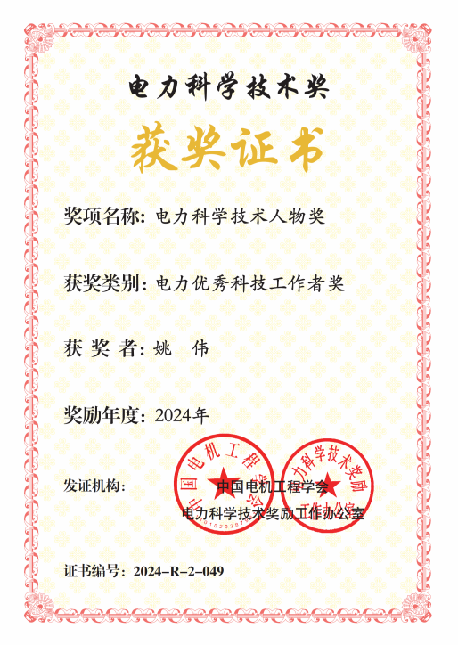 一份耕耘,一份收获。姚伟辛勤付出的同时,收获了一个个荣誉。他先后入选国家优秀青年基金,获中国电力优秀科技工作者、IEEE PES(中国)杰出青年人才奖、爱思唯尔“中国高被引学者”、 国际学术机构ScholarGPS“全球前0.05%顶尖科学家”、国家科技进步二等奖(排第5)、中国电工技术学会科学技术奖一等奖(排第1)、湖北省科技进步一等奖2项(排第2和第3)、NT动漫 学术新人奖等荣誉。