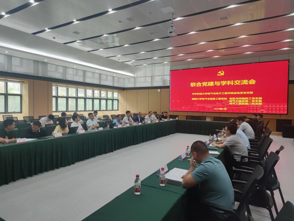 随后,实践队人员与湖南大学电气与信息工程学院的电机与控制等3个党支部开展了联合党建和学科探讨。湖南大学罗安院士开场致辞,介绍了团队在电磁、电热、电声、电电等方向的科研方向布局,指出科研团队应当直接面向工业和国防重大需求,争做单项冠军。许加柱副院长介绍了党建的新改革,列举了科研业务交流中融入党建活动新形式。汪洪亮副书记回顾了自己回国后从零开始进行电声波检测研究的经历,将湖南大学电力电子学科归纳为从电到X转换的纵向拓展、从设备到系统的横向拓展。实践队各位教师分别从学科发展、研究生培养、党建等方面,与在座的湖南大学教师进行了充分的交流。胡家兵院长表示湖南大学有组织科研做得非常出色,是NT动漫 学习的榜样;双方的电气同根同源,希望双方能够延续学术血缘、携手发展共进。