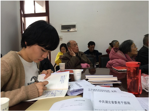 学院老协分会主席孙亲锡向党员汇报了11月下旬参加湖北省老干局组织的党支部书记培训情况。培训的主要内容是学习贯彻党的十九大精神,增强四个自信,强化四个意识;来自全省各地区、各行业的100名党支部书记参加了培训,来自武汉地区高校的有6位同志;有5位同志在会议介绍了开展基层党组织工作的经验和心得体会,与会人员研讨交流了开展工作的方法;会议组织参观了老年大学、医院等老同志活动场所。孙亲锡向全体党员转达了省老干局领导对老同志的关心慰问之情,希望全体老同志不辜负上级期望,老有所为、老有所乐,积极参加丰富多彩的文化体育集体活动,学习养生知识,保证自己的心理健康、身体健康。孙亲锡告诉老同志并希望他们转告全体老同志,12月7日学校老干处将邀请人事处介绍社保政策的重要内容,请大家前往听课。