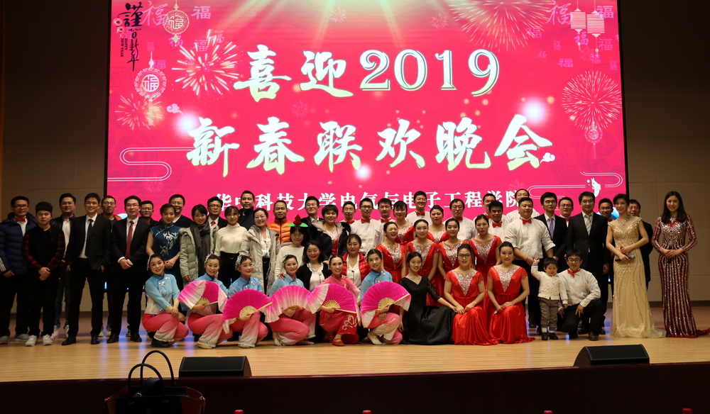精彩的节目仍在继续。电机及控制工程系的同学们为大家带来了酷炫的荧光炫舞。郑皖宁演唱了一首富有楚文化魅力的《越人歌》。几位老师更是把舞台当成了T台,一改平日里严谨认真的老师形象,化身模特儿给大家表演时装走秀。电工理论与电磁新技术系的李开成表演了二胡独奏《渔舟唱晚》。应用电子工程系杨莉莎、林桦带来了双人舞《芳华》。聚变与等离子体研究所的老师们带来了合唱《年轻的朋友来相会》。学生教育管理中心的程曜于和柳子逊老师表演了吉他弹唱——校园民谣串烧。晚会的最后,特别邀请的华中大舞协表演了舞蹈《沂蒙情》,用优美的舞姿为我们诠释“蒙山高,沂水长,军民心向共产党”的伟大沂蒙精神。