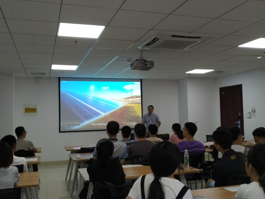 日新科技公司的导师来到学校进行教学,大致介绍公司发展情况、光伏发电行业的发展现状与实际应用、光伏发电的基本原理及工业流程等。导师介绍完毕,学生分组讨论后提出疑问,导师再一一回答,形成良好反馈,学术初步了解光伏发电的相关知识。