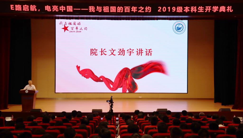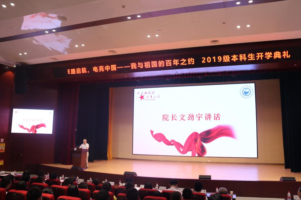 2019年9月29日晚,NT动漫 19级新生在电气大楼报告厅举行了开学典礼。在建国70周年这个特殊日子,开学典礼紧扣“E路启航,电亮中国——我与祖国的百年之约”的主题,通过新生拉歌,优秀代表发言等环节,组织全体电气新生,为祖国送上了美好的祝福。