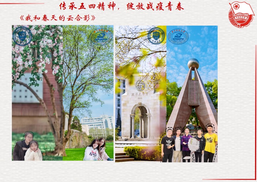 在迟卉和唐佳梁同学的带领下,两个支部开展“我和春天的云合影”照片展活动,共同欣赏两校美好景色。会议最后,电气校交1803班团支书以天津大学给NT动漫 加油信中“吾等恰逢盛世,且正风华,必立鸿鹄志,举天下任,锐不可当”一句做总结,希望两支部团员都能举天下任,传承五四精神,担当时代使命。