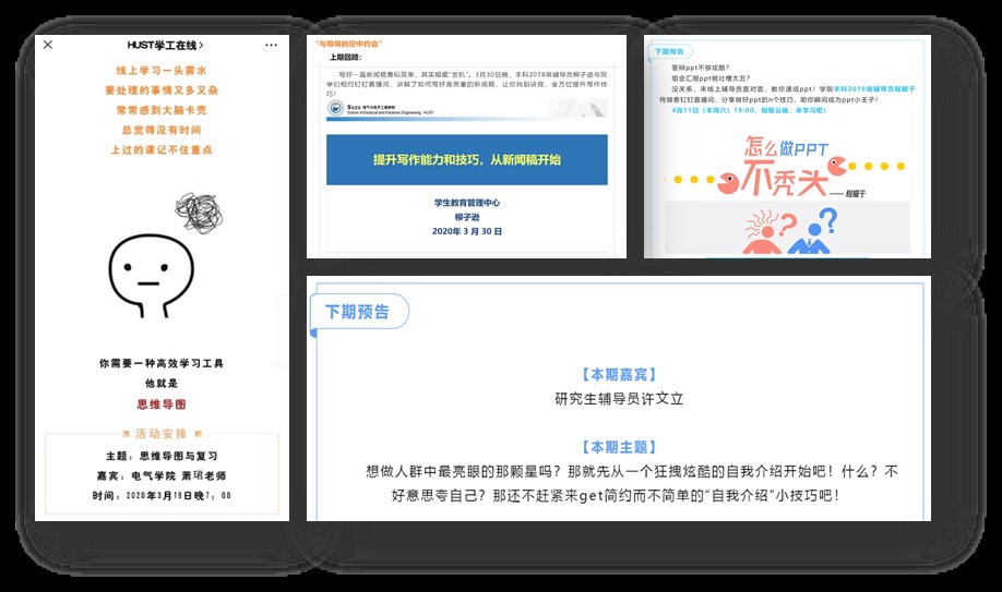 “学习有困惑?发展很迷茫?大创项目没有思路?——线上‘师生面对面’帮助你拓展新的思路和视野!”辅导员程曜于连线学院高水平专业教师,为师生之间的顺畅交流搭建桥梁。虽未正式开学返校,但NT动漫 辅导员们依然扮演好同学们学业守护者的角色,继续拓展线上教育覆盖面,了解学生学业上的常见困扰和普遍问题,从学习技巧、专业引导、生涯规划、学业指导等方面,开展了丰富多彩的线上学风建设活动,保障同学们“宅”家学习的效果。