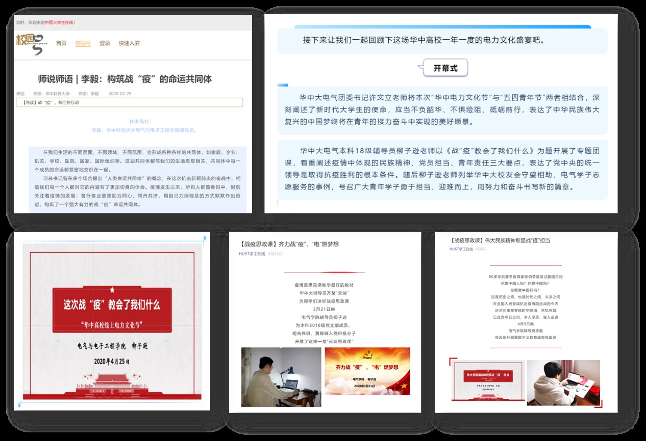 此外,各辅导员还面向自己所在年级,分别开展了“共抗疫情、爱国力行”云端思政课。“我们要用伟大民族精神凝聚起万众一心、共克时艰的强大合力!”辅导员李毅以《伟大民族精神彰显战“疫”担当》为题,在本科19级云端思政课上,从民族精神的内涵出发,呼吁同学们用自己的视角、语言、体验和方式,展现战“疫”风采;而辅导员柳子逊则以《齐力战“疫”,“电”燃梦想》为题,讲述了电气学子助力抗疫的动人故事,鼓励学生热爱专业、踏实学习,在不久的将来用自己的力量改变世界。“希望同学们能够担当责任,勇于奋斗,在奋斗中书写青春!”他慷慨激昂的话语,激励着本科18级的同学们。