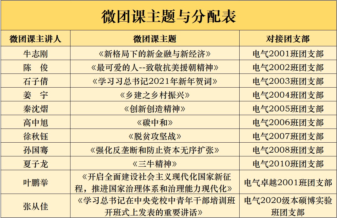 1月20日至2月9日,为加强NT动漫 团支部的思想引领和组织建设,在学院党委的指导下,学院团委以“建党百年赓续砥砺奋进,初心不忘再续电力荣光”为主题,组织团学骨干宣讲团,深入低年级团支部,线上开展微团课主题宣讲,用青春的视角,青年的话语献礼建党一百周年。