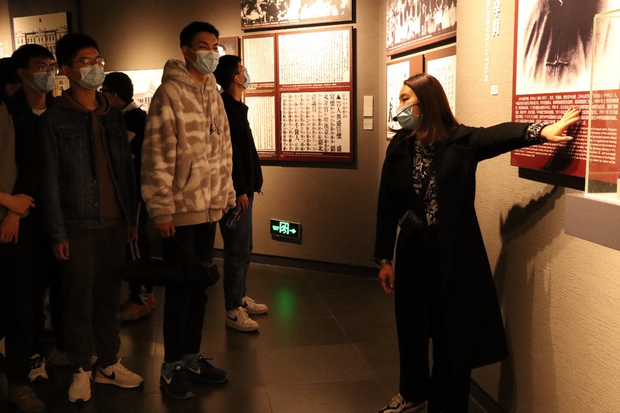 该纪念馆内主要有两个基本陈列——“鄂军都督府旧址复原陈列”和“为天下先—辛亥革命武昌起义史迹陈列”。前者位于纪念馆的主体红楼,全体成员参观了鄂军都督府的各个机构,强烈感受到国民军政府、当年共和国新生命的生机与活力。后者位于纪念馆的议员公所灰楼,灰楼内陈列的武昌起义史迹无不触动着同学们的内心。浴血奋战、不惧牺牲、敢为天下先,这是武昌起义的精神写照,也是我们需要继代传承的精神宝藏。