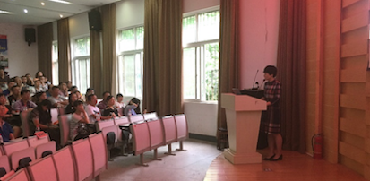 接下来,罗珺就学生教育管理工作进行了说明。她先对学生教育管理中心的工作内容以及中心成员进行了介绍,表明教育管理中心主要从思想教育、学风建设、心理健康教育、资助工作、就业工作、日常事务工作六个方面开展工作,同时跟各个家长强调要关注学生学业问题、心理健康问题、主动加强家校联系。