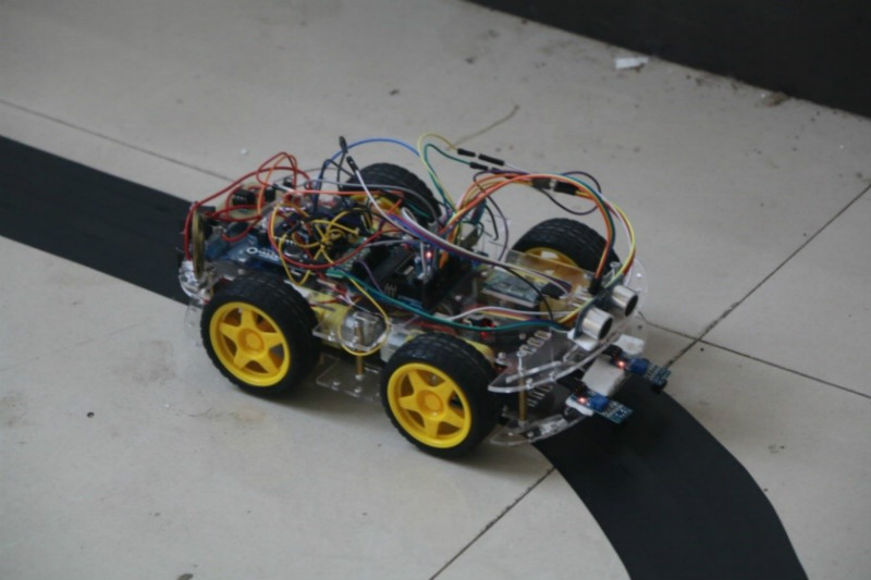 本设计实现的创客小车,能利用红外线反射循迹,通过电机进行驱动,运用蓝牙遥控以及超声波测距。系统由L298电机驱动模块、HC-05蓝牙模块、HC-SR04超声波测距模块、TCRT5000红外反射传感器(循迹模块)四部分组成。具备循迹功能、电机驱动功能、蓝牙遥控功能和超声波测距功能的创客小车将能够代替人力运输货物,以提高现实生活中的生产效率,并且能够节省大量人力,从而获得更大的效益。