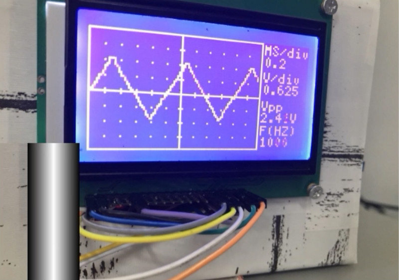 本设计实现的是简易数字示波器,应用Arduino和字库12864液晶屏幕以及开关,能对波形进行显示和适度的放大、缩小和冻结,同时可以显示峰峰值和频率。本设计电路结构简单,波形显示可以自动和手动刷新,具有一定的实际意义。它通过arduino自带的模数转换器读取数据并存入数组,经过线性转换后在显示屏上表现出合适的波形,再通过显示屏相关函数在屏幕上显示边框,坐标轴,和相关参数,一个简易的数字示波器就这样诞生了。