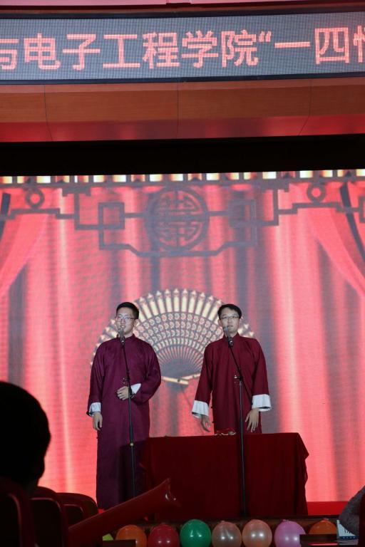 两位同学的相声表演引得满场欢笑