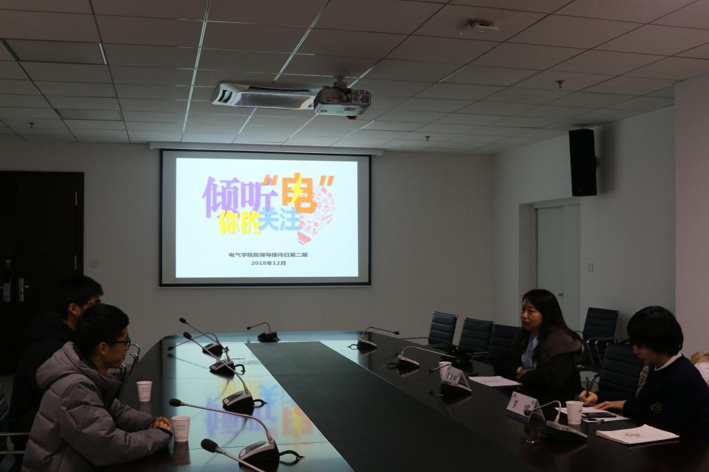 12月29日下午,倾听你的关注“电”——NT动漫 院领导接待日第二期在电气大楼A220会议室举行,副院长李红斌和党委副书记罗珺参加本次活动,为学生解答疑惑,并针对性地给出了意见和建议。