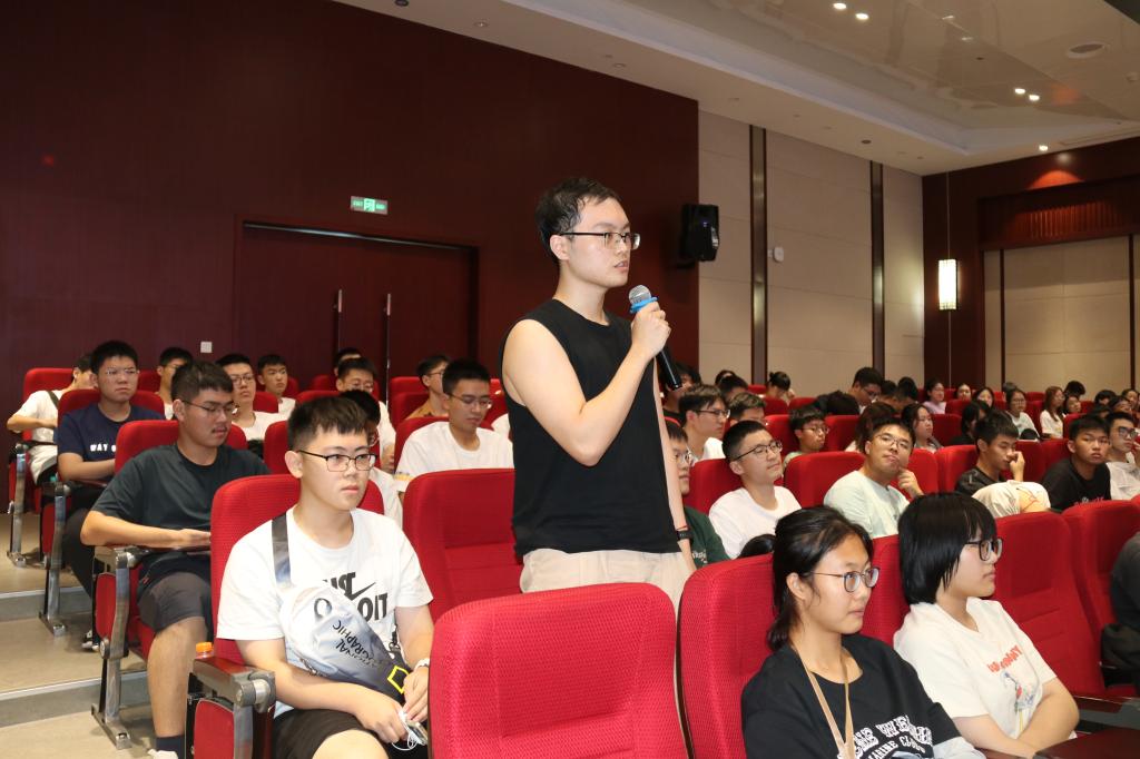 在的讲座最后,同学们积极和胡院长进行交流互动。胡家兵耐心地帮同学们解答困惑,并祝愿全体本科2023级新同学传承“厚积薄发、担当致远”的院训精神,争当时代新人,为学院争光,为祖国建功,在青春的赛道上都能跑出精彩的成绩。