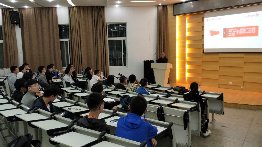 其后,杨长安将目光放回现代,首先对现在的国际形势作出了自己的分析。他认为,中国现在正高速发展,对美国的世界地位有所威胁,因此美国采用了贸易战的方式来打压中国的崛起。他鼓励在场同志,要发挥自身作为电气人才、同时作为一名党员的积极作用,为祖国的发展贡献力量。谈到这里,他也针对目前大学生普遍存在的问题,对同志们进行了批评教育。对于在课堂上迟到、听课不认真、对学术对自身不严格等情况,作为一名电机学的老教师,他要求在坐党员同志杜绝此类问题。