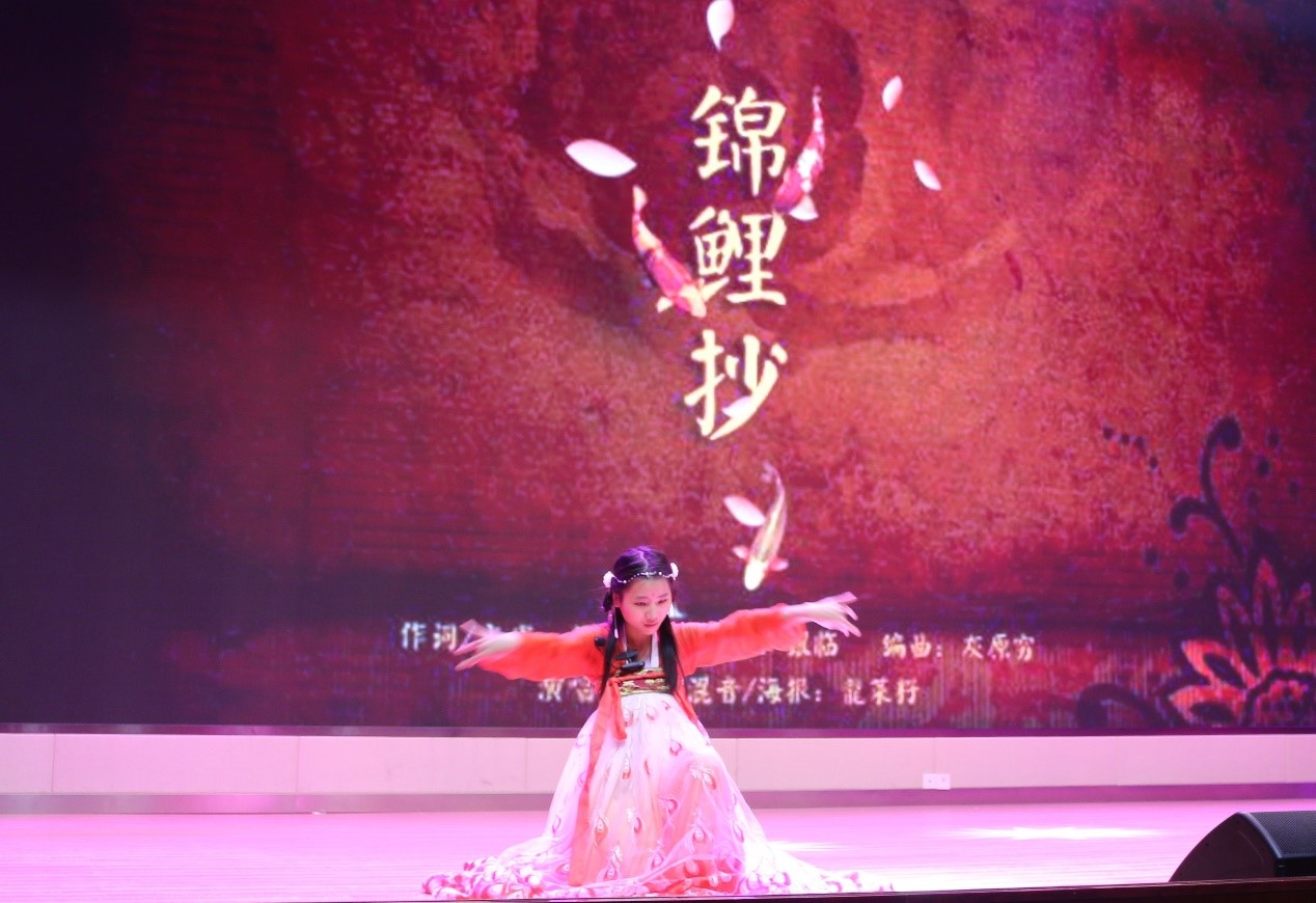 接下来,由硕1901班廖芷燕为大家带来一段温婉的古风舞蹈《锦鲤抄》,她着一身红裙,用优美的舞姿为大家呈现出《锦鲤抄》背后那段温暖长情的故事,“许扶桑花期,诺一世长情”,这温柔的意境使每一个人陶醉其中。