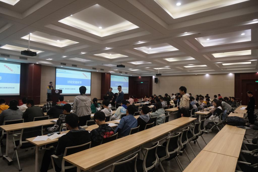 晚上七时,主持人宣布讨论会开始,在主持人进行了简短介绍后,裴雪军教授针对学术诚信的意义和大家进行了深入交流,并以过来人的角度,对博士生和本科生应当分别如何恪守学术道德、遵守学术规范这些问题提出了自己的理解与建议,引导同学们遵守学术规范,树立科学道德,做一名合格的学者。裴老师的分享过程幽默风趣,表达生动形象,会场内不时响起阵阵掌声。
