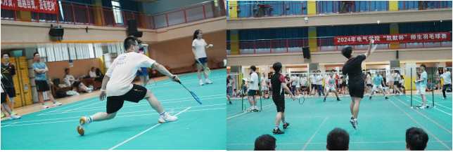 比赛现场,参赛选手们斗志昂扬,各显神通,时而激烈扣杀、时而巧斗网前,只见白色的羽毛球在空中飞舞,划出一道道美丽的弧线,激烈的比赛也变成了赏心悦目的视觉盛宴。从小组赛到淘汰赛,选手们纷纷拿出看家本领,激烈角逐。场上的运动健儿顽强拼搏,场下的观赛队友喝彩欢呼,彰显了电气师生团结一致、奋力拼搏、永不言弃的精神风貌。