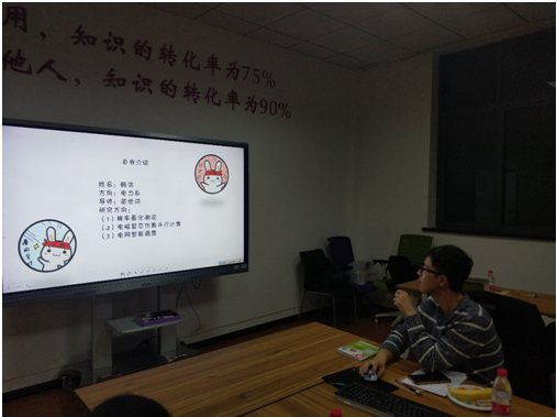 之后是邹剑桥以“科研那些事”为主题进行了分享。他首先对自己进行了简单的自我介绍。出于对电机控制的热爱,在保研时有很大选择余地的邹剑桥果断选择了在当时并不算热门的电机方向。在导师的严格要求和课题组人力匮乏的情况下,他在大四时就开始了自己的科研生活,并在大四时独立调通了一套永磁同步电机平台、写了两篇EI论文,他的本科毕业论文也被评为了湖北省优秀学士学位论文。在科研工作的分享方面,邹剑桥主要分为学术研究和企业项目两个方面进行。“学术研究方面就是要求结合课题组已有的基金发表NT动漫相关的文章,只要达到了发文章的要求,任务就算完成。”他说道。他也为大家总结了发表文章的要点。首先是需要看大量文献,尤其是外文文献,看完后,把自己当成审稿人去评判文献的好坏并做整理总结;之后要去熟悉自己研究的领域有哪些人、哪些机构在做自己研究领域方面的研究,并时刻跟进“大牛”的研究进展;最后他也指出切忌一稿多投,急于求成。此外,有关学术诚信方面,他也指出绝对不能造假或抄袭,一旦被查重,就会被期刊标识,以后就很难再向投稿的期刊投递文章。接着是企业项目方面。他指出,做实际项目的目的性一般很强,结合企业需求,做的事情会更加实际一些。他认为,多做几个完整的实际项目,很锻炼自己的能力,对于将来想去企业发展的同学会很有优势。在项目进行的过程中,很多本科时学习的知识就足以解决问题,遇到问题时所需要的就是把问题描述清楚,一旦知道问题在哪就很容易解决问题。但他也提示道,做企业项目往往很难出成果,在评奖评优时会很吃亏。科研之外,邹剑桥也提到了加强体育锻炼的重要性。“如果不想变胖,发际线变高,甚至脱发,每周锻炼一次。”他调侃道。分享的最后,他总结道,“研究生生活可以多姿多彩,也可以单调乏味,这全取决于你对自己的安排。机会很多,要好好把握!”