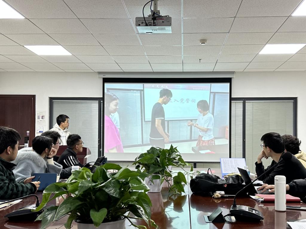 硕2205班党支部书记陈俊从创造集体感、强调责任感、打造家文化等方面介绍了党支部的工作。在党支部建立初期,以举办体育活动等方式促进支部成员之间的交流,将党支部凝聚成一个有力的集体;党支部多次与兄弟院系共同开展主题党日,并聚焦于情感教育和人文关怀,与NT动漫 研究生支教团广西百色分队进行访谈交流活动,与贵州务川分队进行捐款活动,温暖自己的同时照亮他人。