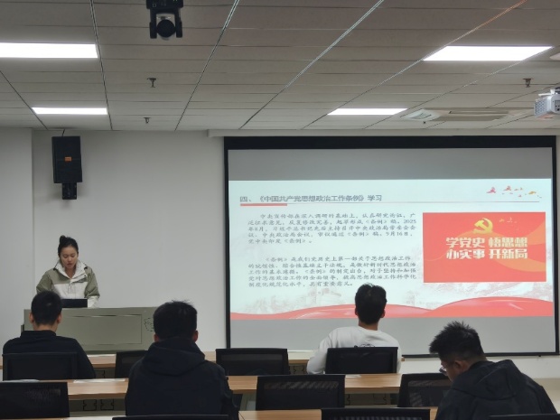接着,在铸牢中华民族共同体意识专题学习中,会议学习了习近平总书记重要讲话精神,围绕“休戚与共、荣辱与共、生死与共、命运与共”的共同体理念开展研讨。同志们表示,要以文化认同为基础,把构筑中华民族共有精神家园融入科研与生活,促进民族团结进步。会议预热学习了党的二十届四中全会精神及“十五五”规划的战略背景,并组织学习了《中国共产党思想政治工作条例》。通过逐条学习,同志们明确了《条例》的指导要求,表示将把其内容融入“三会一课”、实验室安全与科研诚信等日常管理,切实增强思想政治工作的精准性和实效性。