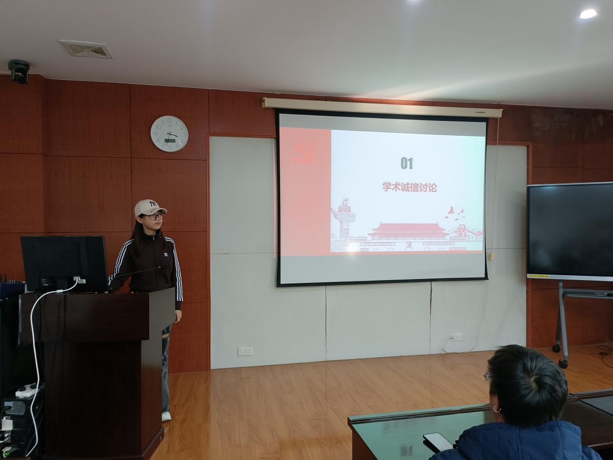 随后,支部成员杨良辉同学和汪田径同志结合自身科研实践与学习体会,先后作了交流发言。他们从不同角度阐述了学术不端行为的危害性,分享了在日常科研工作中如何践行严谨治学态度、遵守学术规范的心得,并一致表示,作为研究生党员,更应率先垂范,自觉维护风清气正的科研环境,将实事求是的科学精神内化于心、外化于行,在追求真理、探索创新的道路上行稳致远。讨论环节气氛热烈,进一步强化了全体党员和团员对学术诚信重要性的共识。