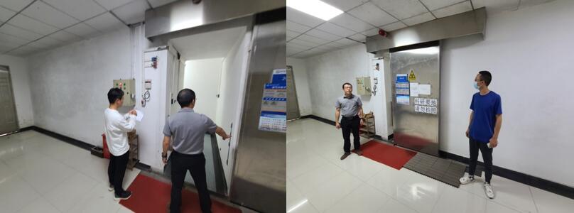 图3 保障小组秦斌老师、李冬老师和陈曲珊老师控制现场,并检查剂量点数据