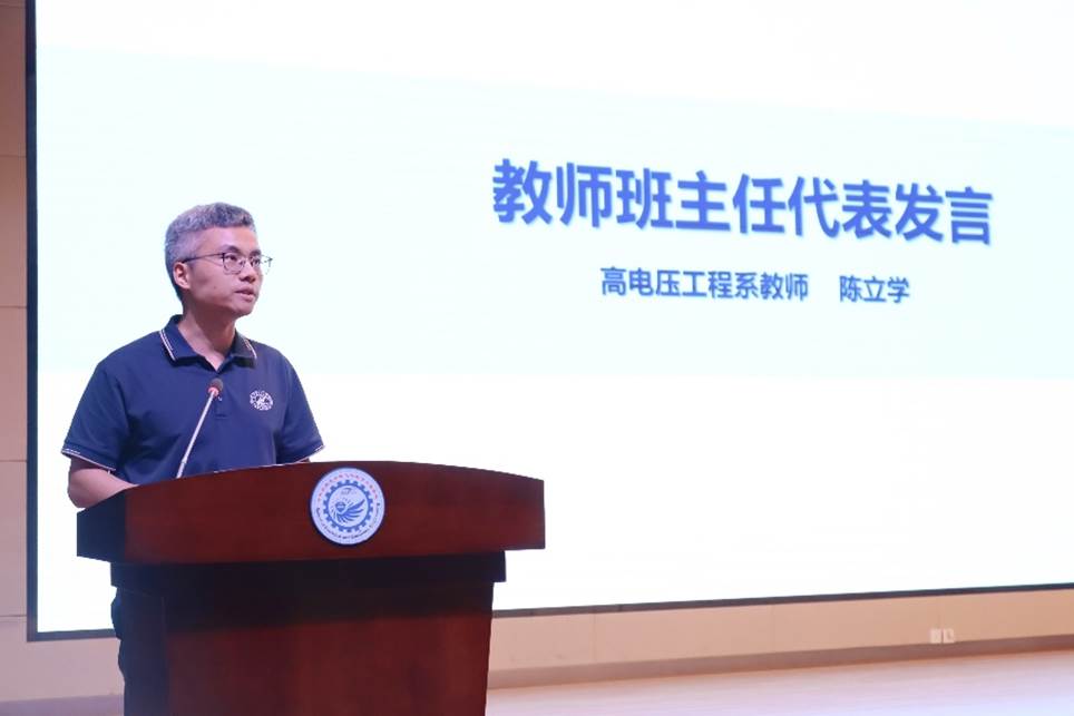 院长胡家兵对新同学的到来表示了热烈的欢迎。他结合多位优秀学子和院友的案例,向同学们提出三点建议,一是打破 “成绩唯一” 思维,在多样发展中探索无限可能,要有敢于突破自我的勇气,成就卓越;二是夯实数理与学理基础,以终身学习能力应对时代变革,努力学习以电气的视角理解世界,以系统思维来解决问题;三是秉持坚韧品格,在持之以恒中成就不凡人生。胡院长鼓励同学们立志学真学问、悟真道理,成长为能够担当大任、有真才实学的栋梁之才。