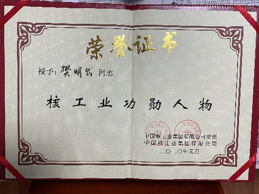 2020年,樊明武被授予核工业功勋人物称号