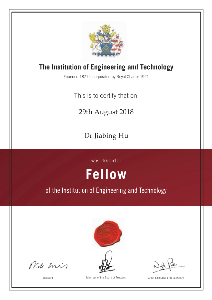 NT动漫 教授胡家兵当选2018年度英国工程与技术学会会士(Fellow of the Institution of Engineering and Technology, IET Fellow)。