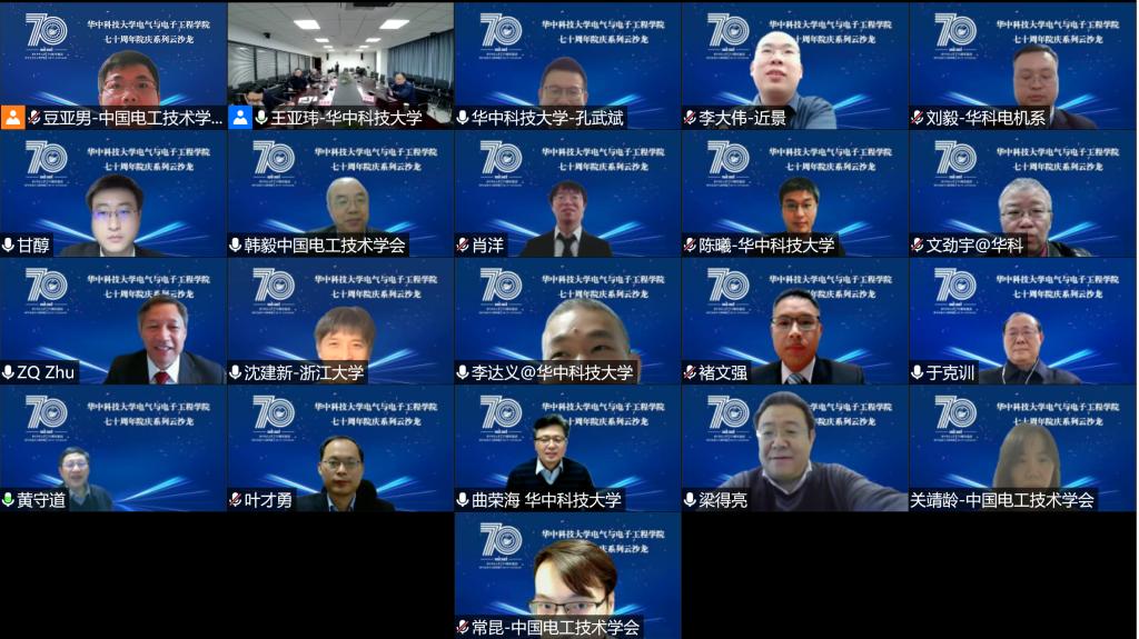 云沙龙活动首先由NT动漫 院长文劲宇教授致辞,回顾了学院70年的发展历程和取得的辉煌成就。紧接着,中国电工技术学会韩毅秘书长代表学会对NT动漫 建院70周年表示热烈祝贺,也期待学会和华科更进一步的合作。电机系主任李达义教授从历史沿革、人才培养和科研成果等方面做了报告,系统地展示了华科电机的深厚底蕴和丰硕成果。云沙龙活动由王亚玮副研究员主持。