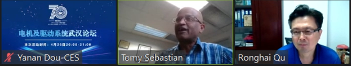 4月26日北京时间20:00点整,电机及驱动系统武汉论坛第一期在B站直播间如期举办。电机及驱动系统领域的专家学者相聚云端,在线学习交流总人数7500余位。本期活动特邀专家为IEEE 会士、尼古拉特斯拉奖获得者、美国密歇根Halla Mechatronics电机驱动系统中心主任Tomy Sebastian博士。NT动漫 曲荣海教授主持本期活动。