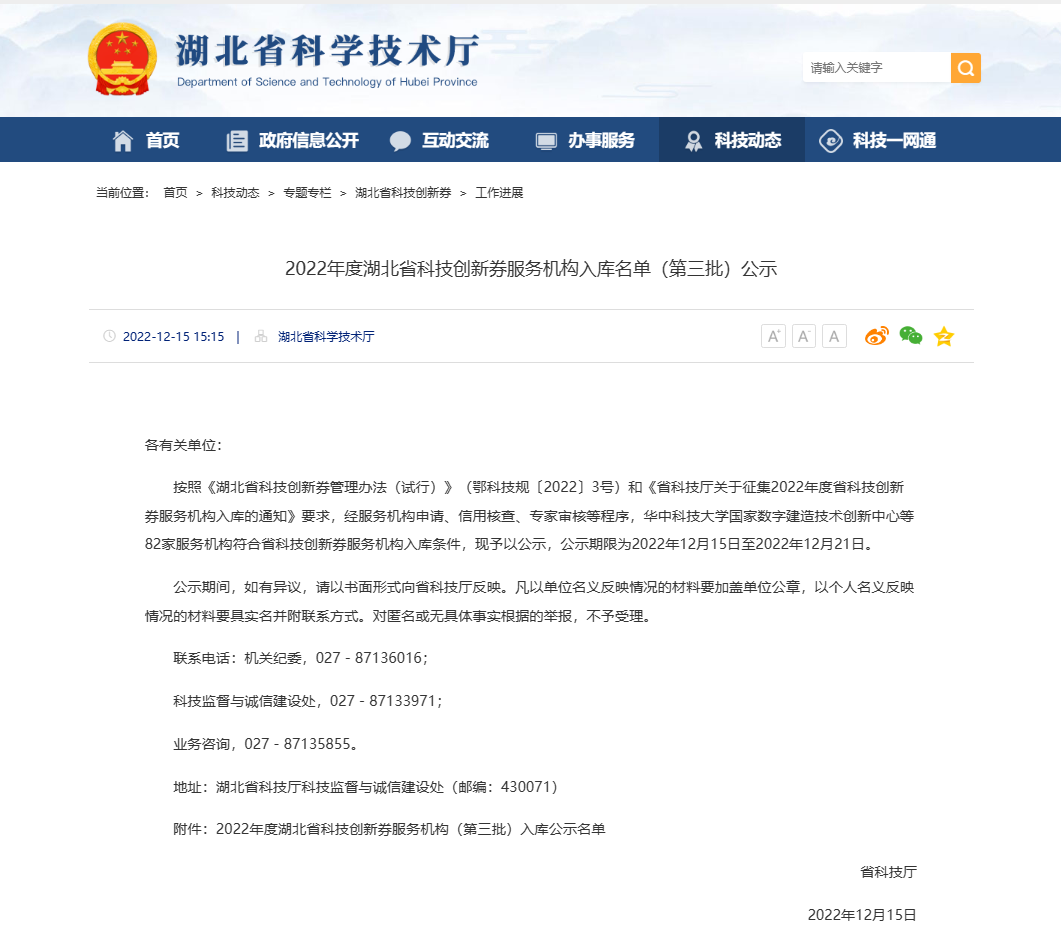 湖北省科技厅公示2022年度湖北省科技创新券服务机构入库名单(第三批),NT动漫 NT动漫 成功入选为省科技创新券服务机构,成为入库的44家高校之一。