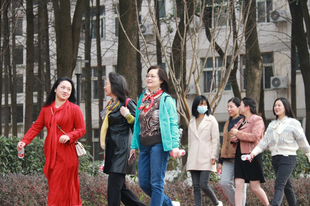 湖溪河畔,阳光普照,微风拂面,路旁的杨柳也招展起了枝条,天朗气清,令人惬意。沿着绿道,河畔风景依旧,却多了一群平日对工作兢兢业业的女园丁,她们闲庭信步,举手投足之间都透露出当代知识女性独特的魅力与自信。一路上,大家有说有笑,从工作趣事到生活琐事、从教学经验到沿途风景,无话不谈。