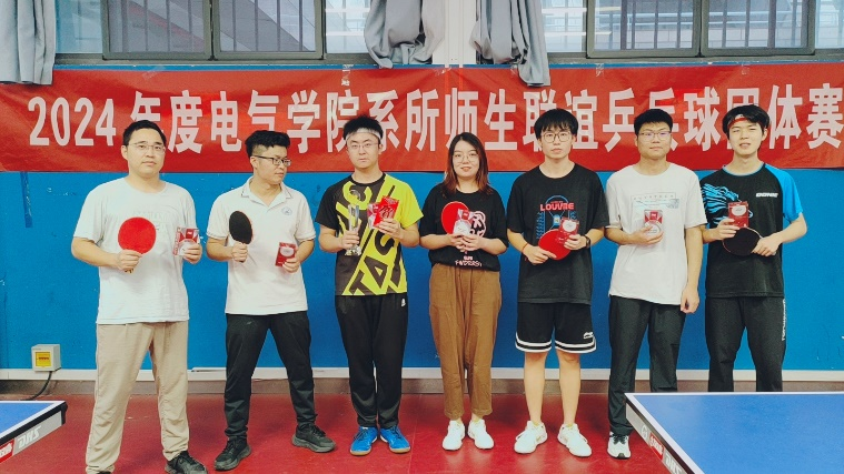 比赛开场,“实行战队”对阵“应电强磁队”。男一号朱瑞东老师沉稳出场,只见他横握球拍,目露神光,发出一个短下旋的旋球。耿辉辉博士后对对手的球路刁钻估计不足,站位稍后,来不及反应,眼睁睁看着球低飞而下,迅速下网,朱老师旗开得胜,赢得了开局的1分。接着朱老师暗度陈仓,突发一个长球,果然对方回球质量不高,朱老师趁势而动,立刻形成猛烈的攻击,球如同闪电般高速飞去,以11:5的成绩先胜一局。然而,耿辉辉老师毕竟是耿辉辉老师,他沉着冷静不气馁,大脑里急速寻找新的战术,在队友的鼓励下,他积极调整策略,果断转变打法,左推右攻,灵活运用下旋球,长短结合,逐渐找到节奏。在第二局和第三局中,他的表现披荆斩棘,先是逼迫对手失误,再是以攻为守,随着每一次精准的回球与巧妙的战术安排,耿辉辉老师成功逆转局势,以迅雷不及掩耳之势,赢得了首场比赛的胜利。也为该队最后获得冠军奠定了关键的基础。