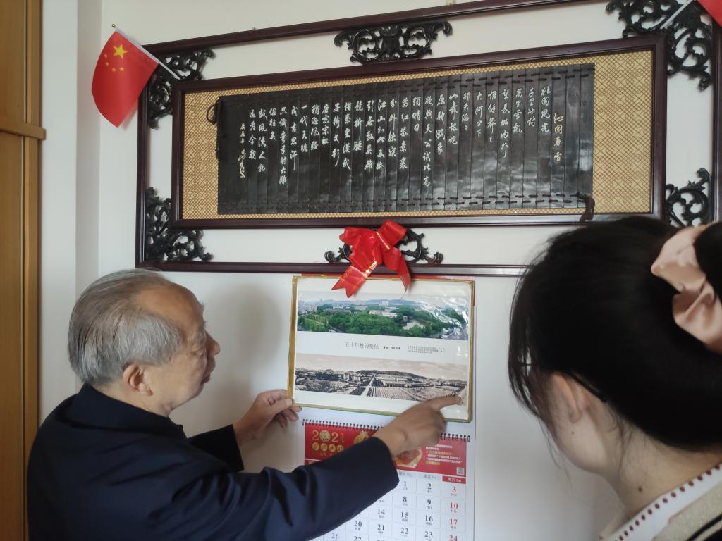 初次见面,李老师热情地邀请我们前往家中一叙。李老师家中虽然布置朴素,却处处流露出一名科研工作者对生活的热爱。在一卷《沁园春·雪》的字画下,我们围成一桌,与李老师促膝谈心。