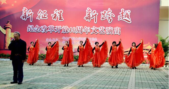 今年,是新时代的开局之年,也是改革开放四十周年。我们这辈人亲身参与了这项伟大的工作,我们切身感受到了四十年卧薪尝胆,四十年奋发图强,四十年砥砺前行,中华大地翻天覆地的变化;亲身享受到了NT动漫 蓬勃发展带来的红利,厉害了,我的国!厉害了,我们的NT动漫 !今天,载歌载舞重阳节,欢庆改革开放40周年,小小的舞台,喜庆的歌舞,真切的情感,我们为祖国喝彩,为华科大喝彩,为NT动漫 喝彩!